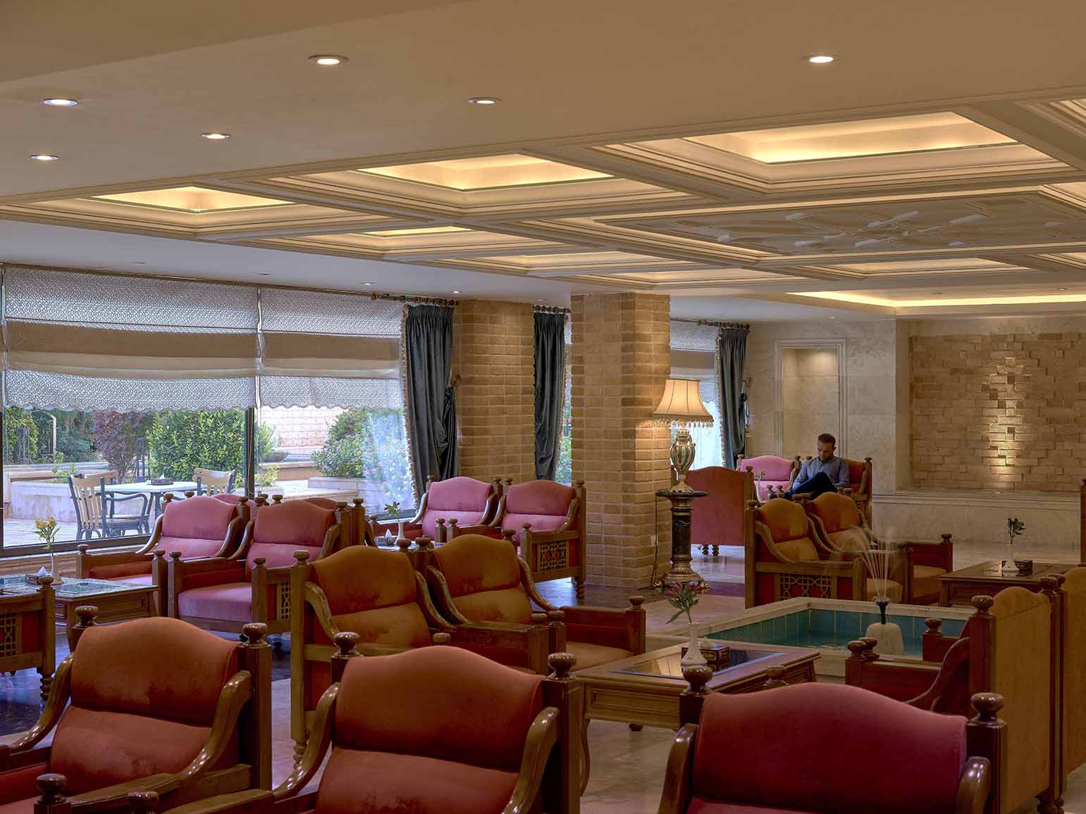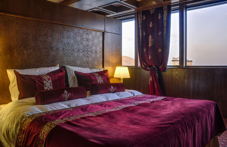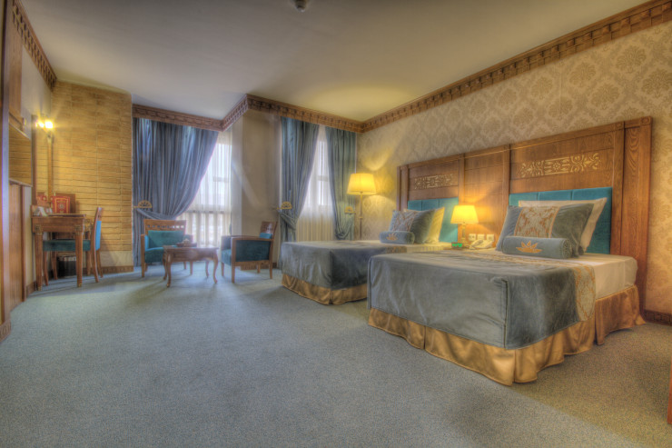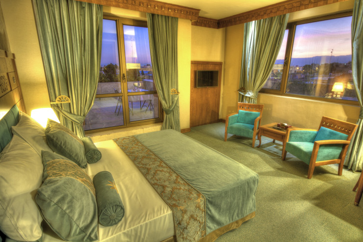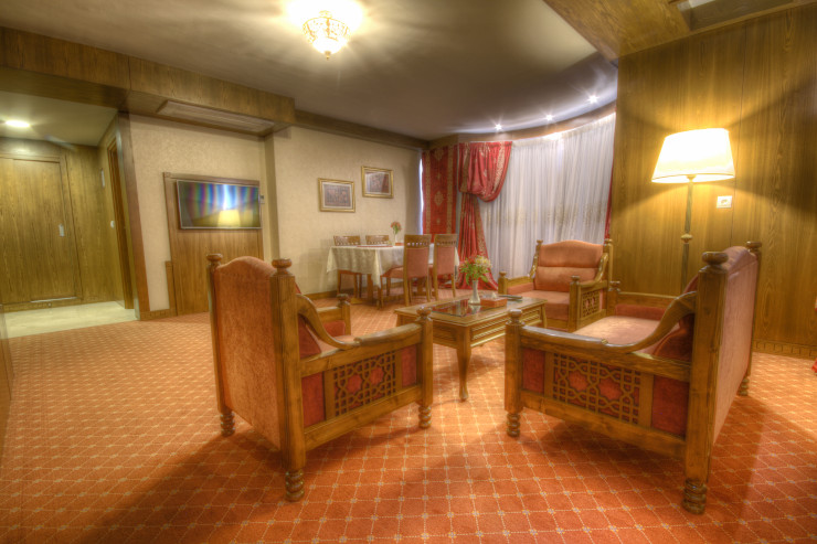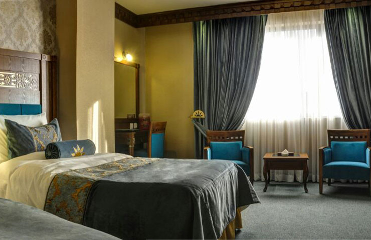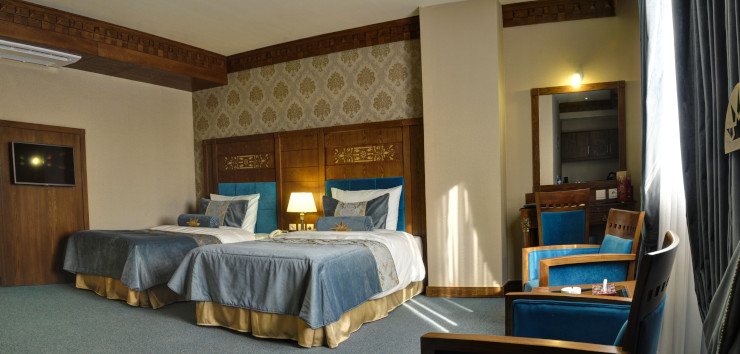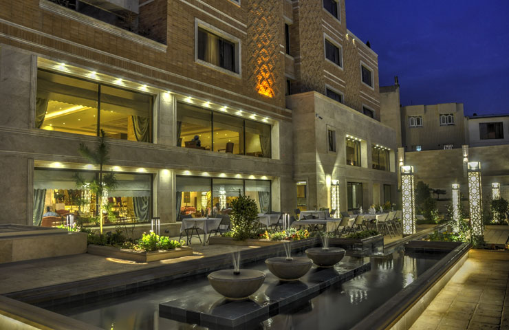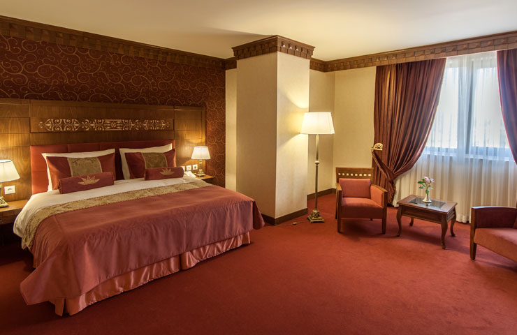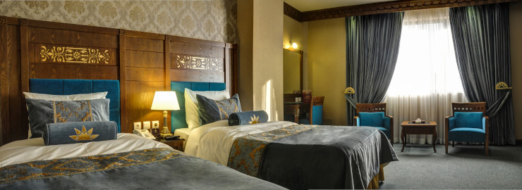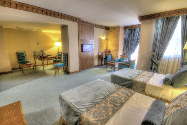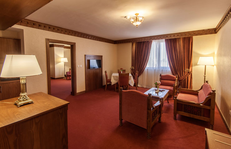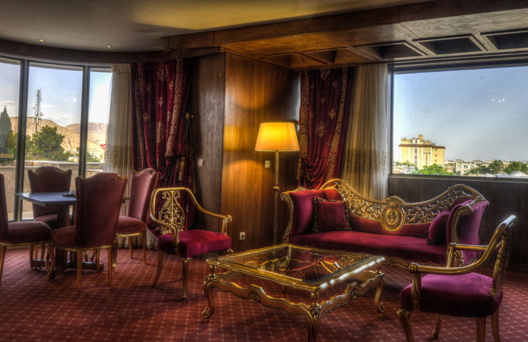 سوئیت مجلل و زیبای زندیه در فضایی بسیار شیک و متفاوت همراه با مبلمان مجلل و دکوراسیون ویژه و بالکن مخصوص آراسته به گل و گیاه و با چشم اندازی بسیار زیبا و بی نظیر از سویی به دروازه قرآن و از سویی دیگر به ارگ زیبای کریمخان می باشد.